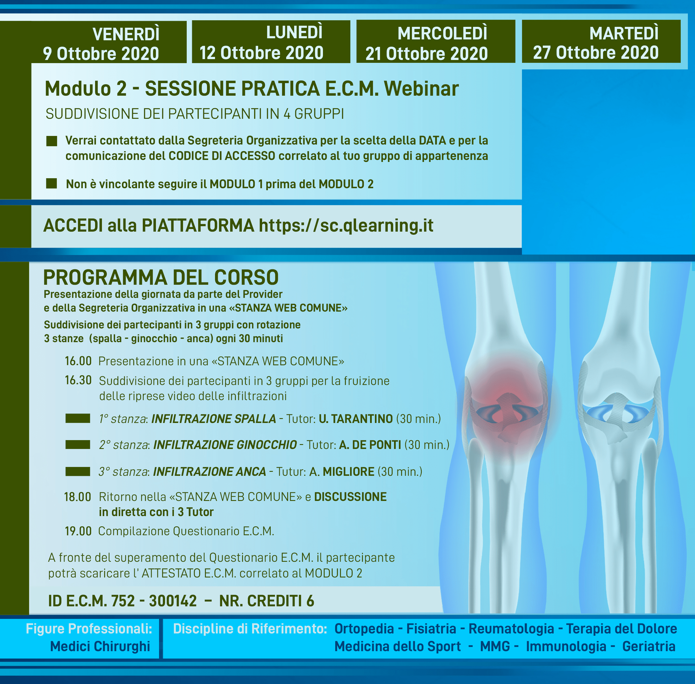 Discipline di Riferimento: ALLERGOLOGIA ED IMMUNOLOGIA CLINICA – ORTOPEDIA – REUMATOLOGIA – FISIATRIA – ANESTESIA E RIANIMAZIONE – MEDICINA DELLO SPORT – MMG – GERIATRIA